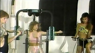 cuatro doncellas están haciendo ejercicio en la sala de estar y cuando sudan, comienza el onanismo de chica/chica