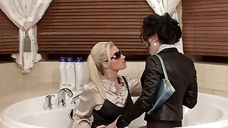 Blonde and the dark-haired babe having a great time in the bath