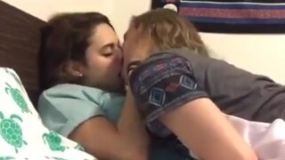 Sensual lesbian pussy licking, kissing, strap on dildo, cowgirl, restrain bondage, female orgasm - amateur homemade Kira Green