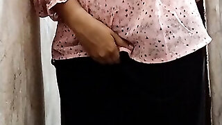 Morning orgasm for a mature girlfriend with juicy booty in panties. Lesbian with hairy cunt. Point Of View.