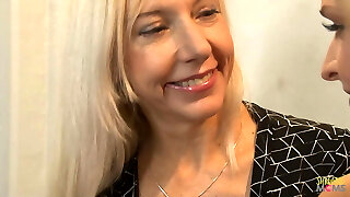 Mature granny teaches a younger blondie woman how to please a woman