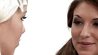 The game night gets steamy as the lesbian ginger-haired seduces the blonde and they start smooching and frigging