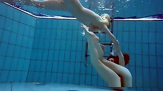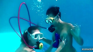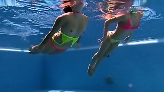 Violet Skye, Valentina Cruz And Amber Lynn Bach - Two Naked Chicks Breath Holding Underwater In Pool